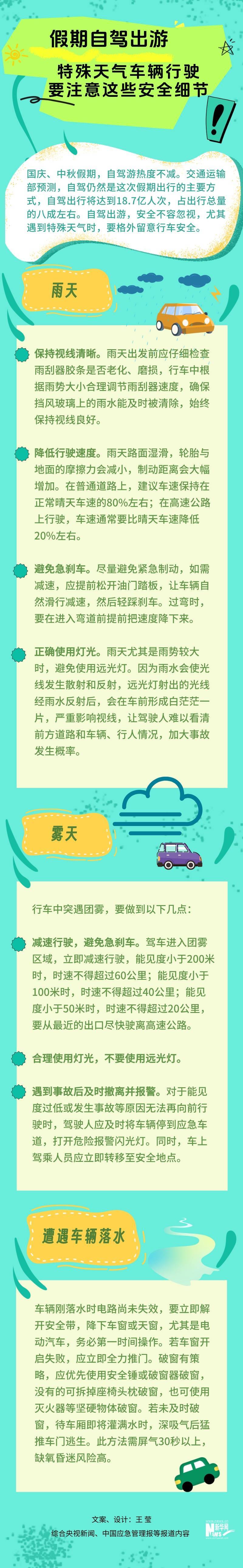 国庆中秋假期正逢一年里秋高气爽的时节,适宜外出游玩。但还是有部分地区会迎来雨雪天气,国家气候中心副主任肖潺在中国气象局9月28日举行的新闻发布会上介绍,国庆中秋假期期间,华西、黄淮多降雨天气,青藏高原及新疆北部多雨雪。如果去这些地区自驾游,要注意特殊天气下的行车安全。一图了解。
